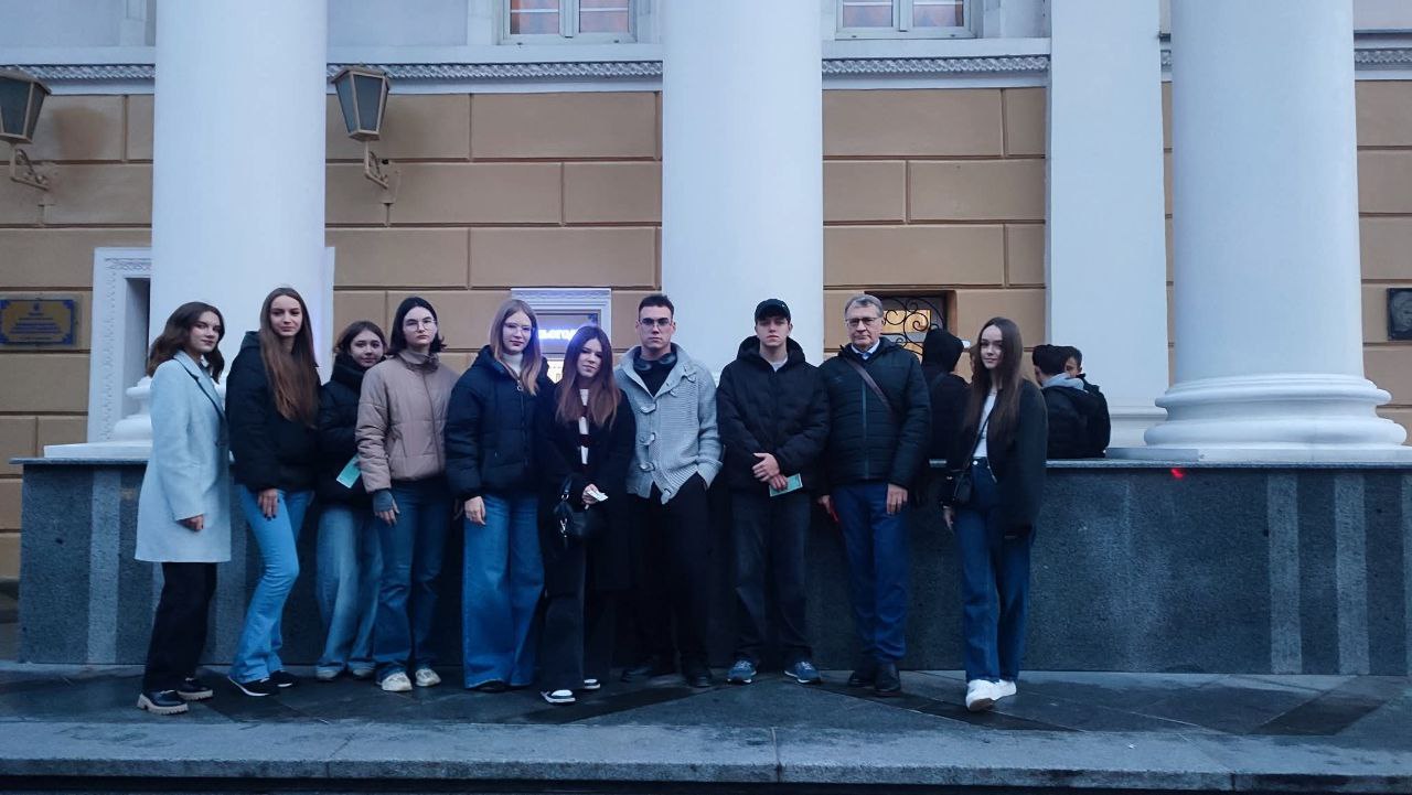 23 жовтня 2025 року здобувачі 1-го курсу кафедри фінансів і банківської справи ДонНУ імені Василя Стуса разом із куратором Вадимом Петровичем КОЗЛОВИМ провели чудовий вечір у Академічному музично-драматичному театрі ім. М. Садовського, переглянувши блискучу музичну комедію М. Старицького — «За двома зайцями».