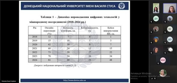 На засіданні з доповідями виступили здобувачі: Апенюк А., Складанюк Д. “Розвиток посередницької діяльності в умовах цифровізації” (науковий керівник – Атаманчук З.А.); Кудрявська А. “Перспективи використання блокчейн-технологій у міжнародному бізнесі” (науковий керівник – Варламова М.Л.); Джура А. “Streaming Platforms and Cultural Industries Trade”; Дунець О. “Тіньовий сектор у структурі міжнародного бізнесу” (науковий керівник – Атаманчук З.А.).