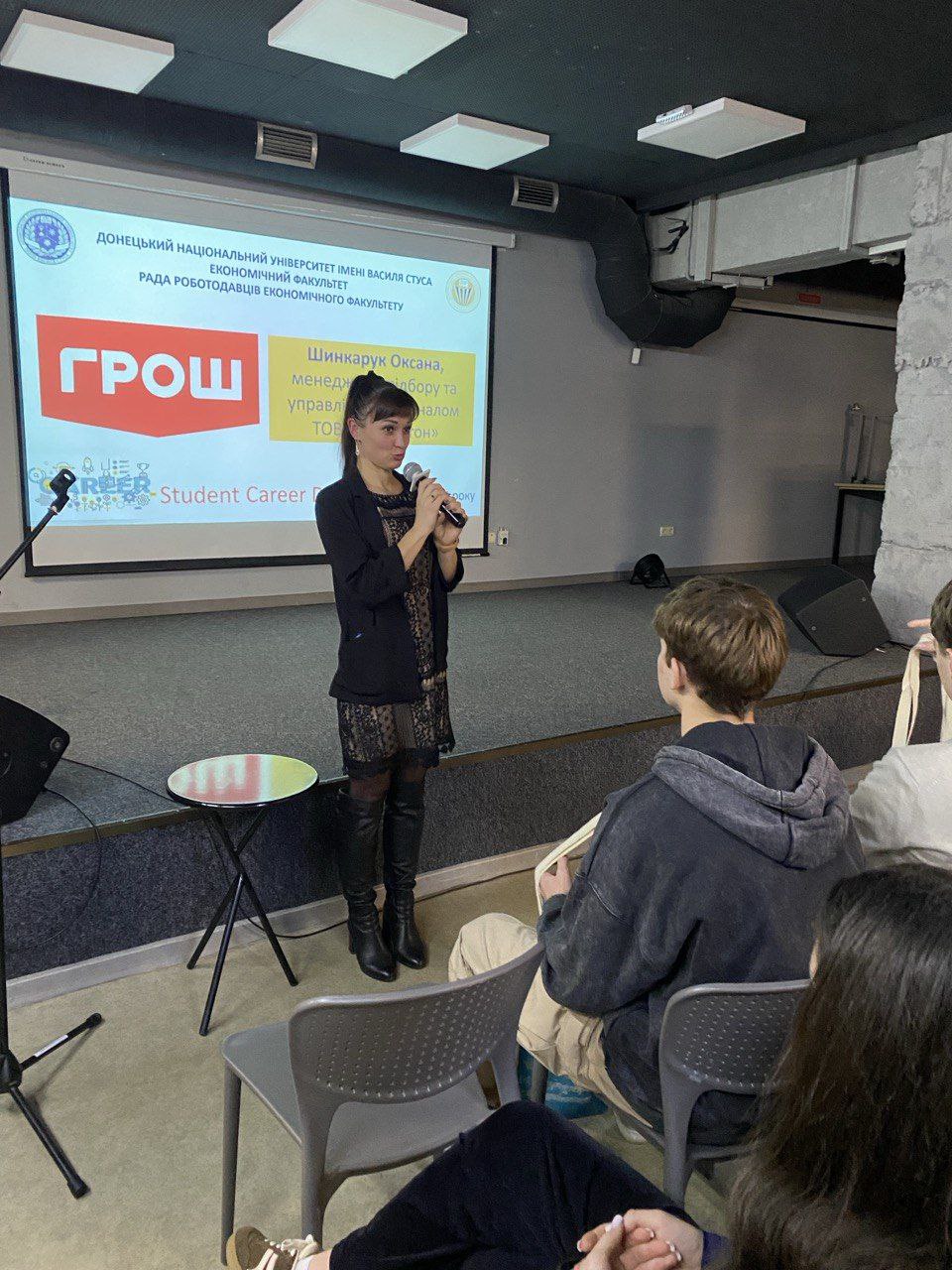 Зі вступним словом до присутніх звернулася декан економічного факультету, доктор економічних наук, професор Тетяна Вікторівна Орєхова, підкресливши важливість побудови кар’єрної траєкторії ще під час навчання та роль партнерства університету з бізнесом.