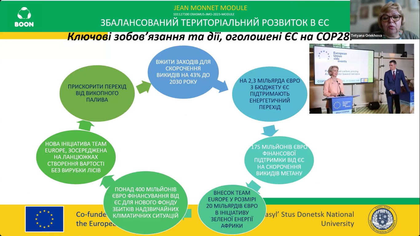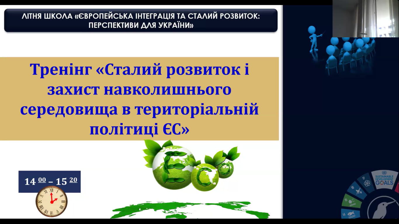 -сталого розвитку і захисту навколишнього середовища в територіальній політиці ЄС, стратегії адаптації до зміни клімату в ЄС (тренер – доктор економічних наук, професор, декан Орєхова Тетяна Вікторівна Татьяна Орехова , запрошений гість – Радник Віце-прем’єр-міністра з питань європейської та євроатлантичної інтеграції України РЯБЧИН ОЛЕКСІЙ МИХАЙЛОВИЧ);