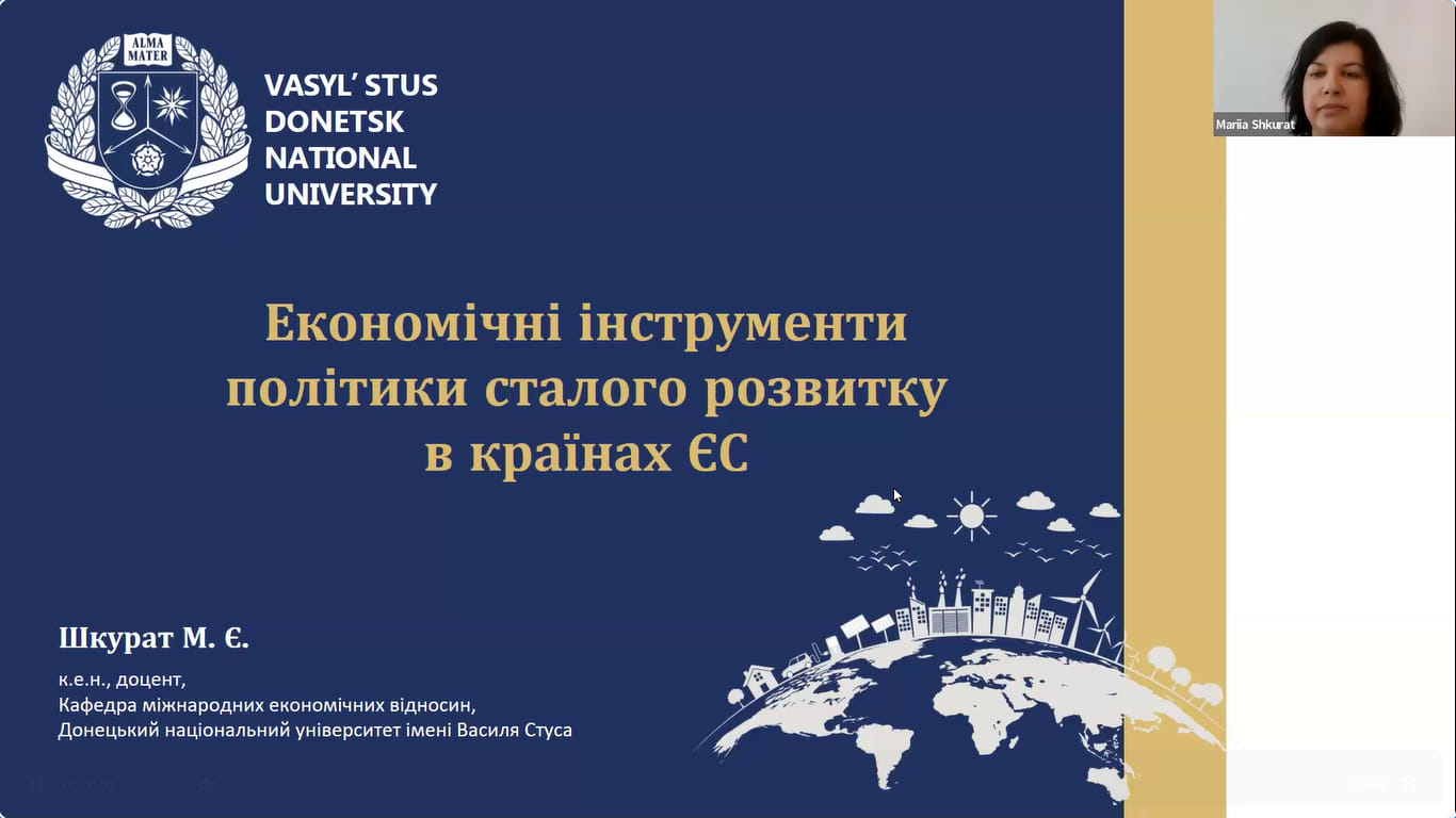 -економічних інструментів політики сталого розвитку в країнах ЄС (тренер – кандидат економічних наук, доцент, доцент кафедри міжнародних економічних відносин ДонНУ імені Василя Стуса Шкурат Марія Євгенівна Марія Шкурат ).