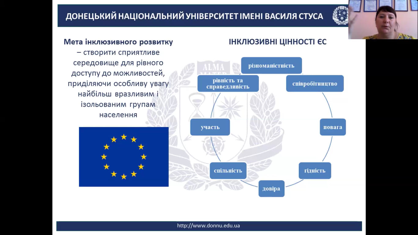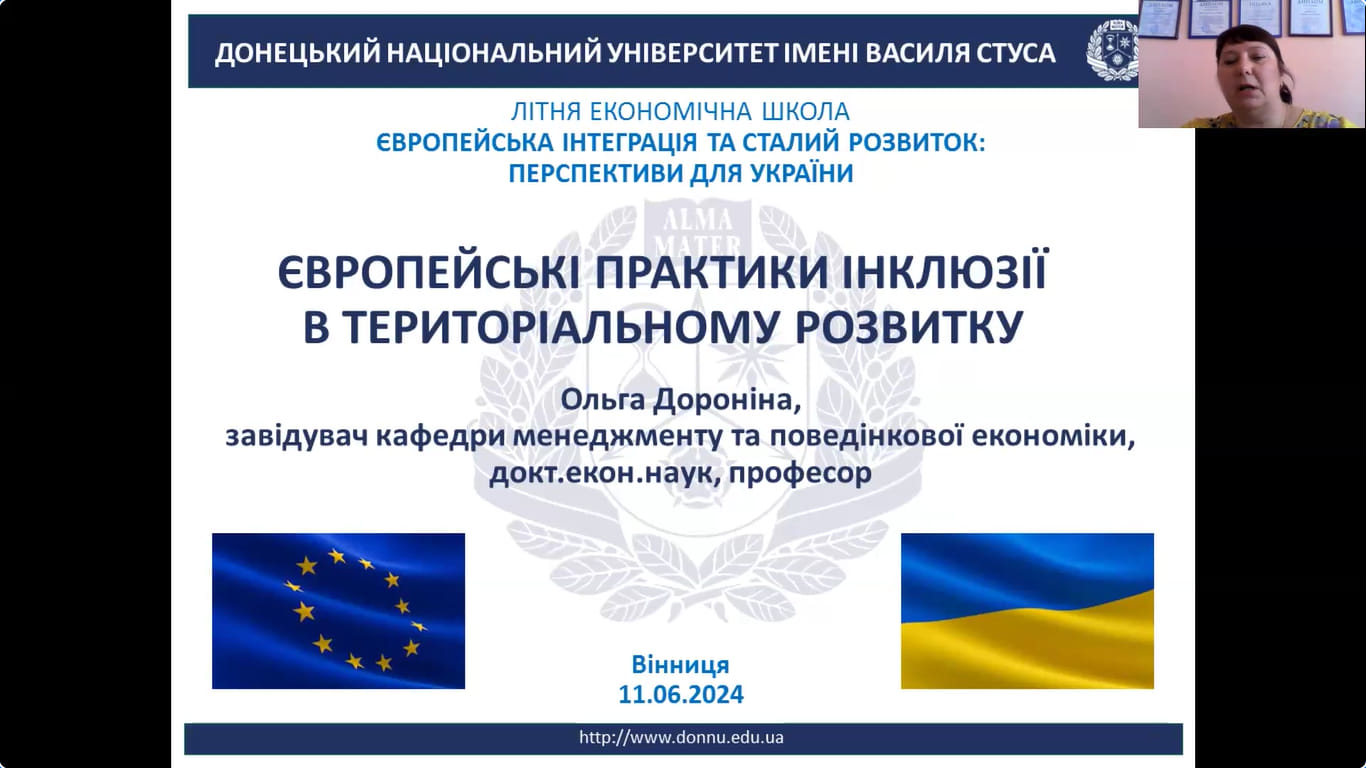 -європейських практик розвитку інклюзії в територіальному розвитку (тренер – доктор економічних наук, професор, завідувач кафедри менеджменту та поведінкової економіки ДонНУ імені Василя Стуса Дороніна Ольга Анатоліївна Ольга Дороніна );