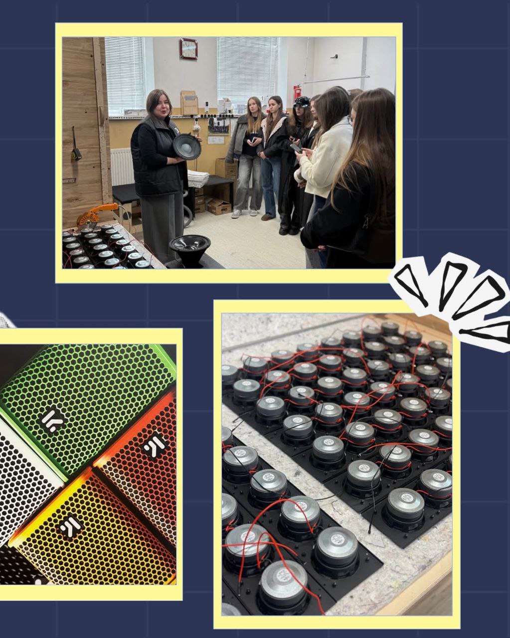 Студенти ознайомились із виробництвом професійного звукового обладнання — підсилювачів, акустичних систем і сценічних комплексів, які звучать від Вінницької Вежі до європейських арен