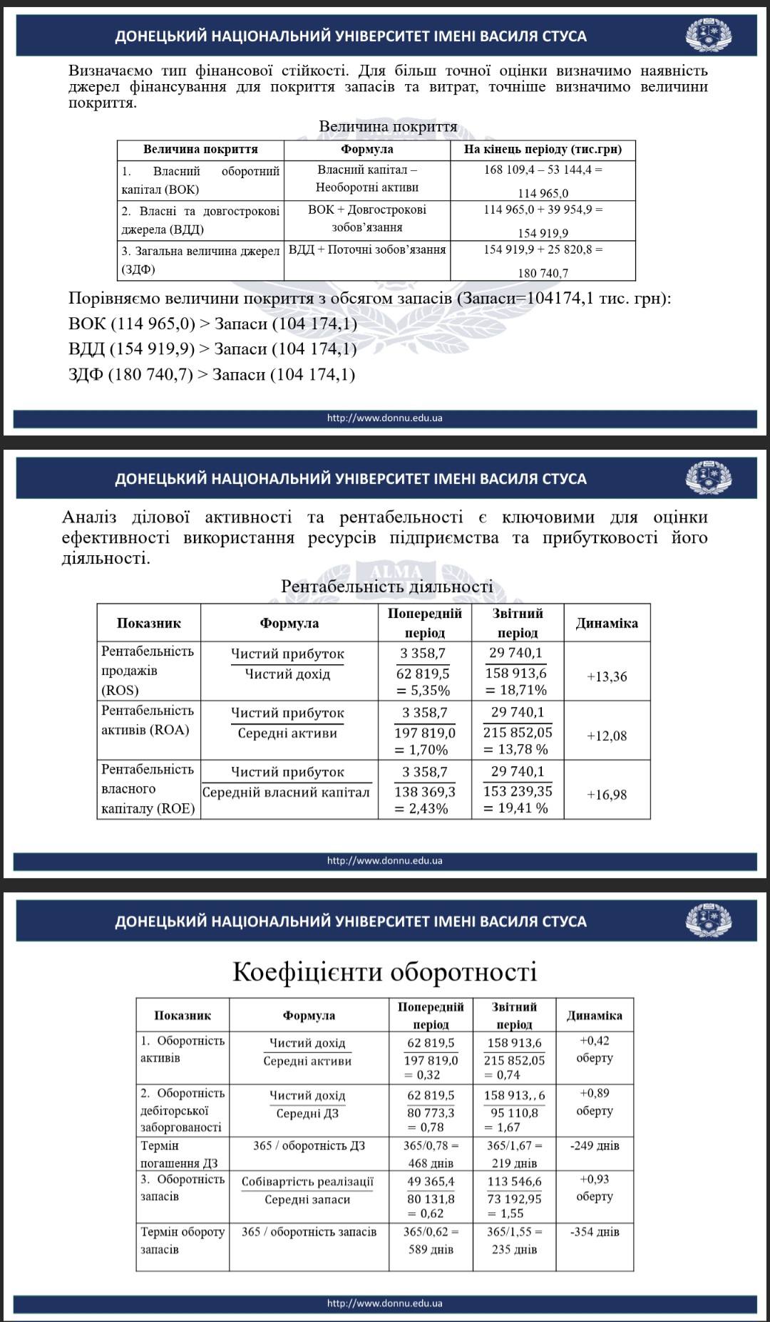 Тарасюк Анастасія представила комплексну оцінку діяльності ТОВ «АГРОФІРМА «КОРВЕТ» на основі аналізу фінансової звітності за 2022–2024 роки, акцентувавши на шляхах удосконалення фінансової звітності в умовах воєнного стану.