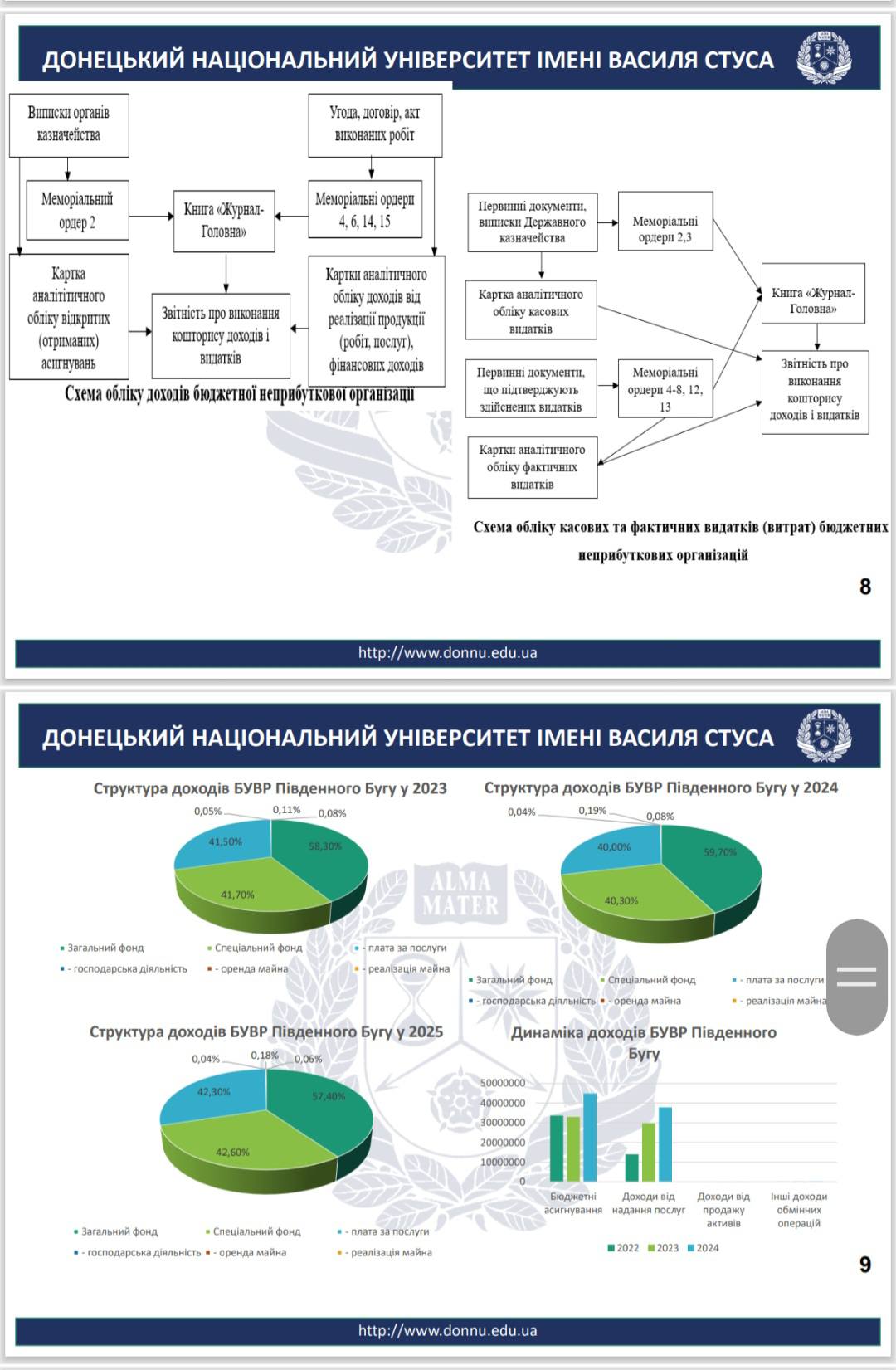 Турченко Наталія дослідила облікове забезпечення діяльності неприбуткових організацій на прикладі Басейнового управління водними ресурсами річки Південний Буг, показавши тенденції розвитку спеціального фонду, проблеми ліквідності та перспективи підвищення ефективності управління фінансами.
