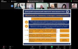 - «Виклики ринку праці фаховим компетентностям випускників спеціальності «Міжнародні економічні відносини» – Орєхова Т.В., проректор з науково-педагогічної роботи та міжнародних зв’язків Донецького національного університету імені Василя Стуса, д.е.н., професор