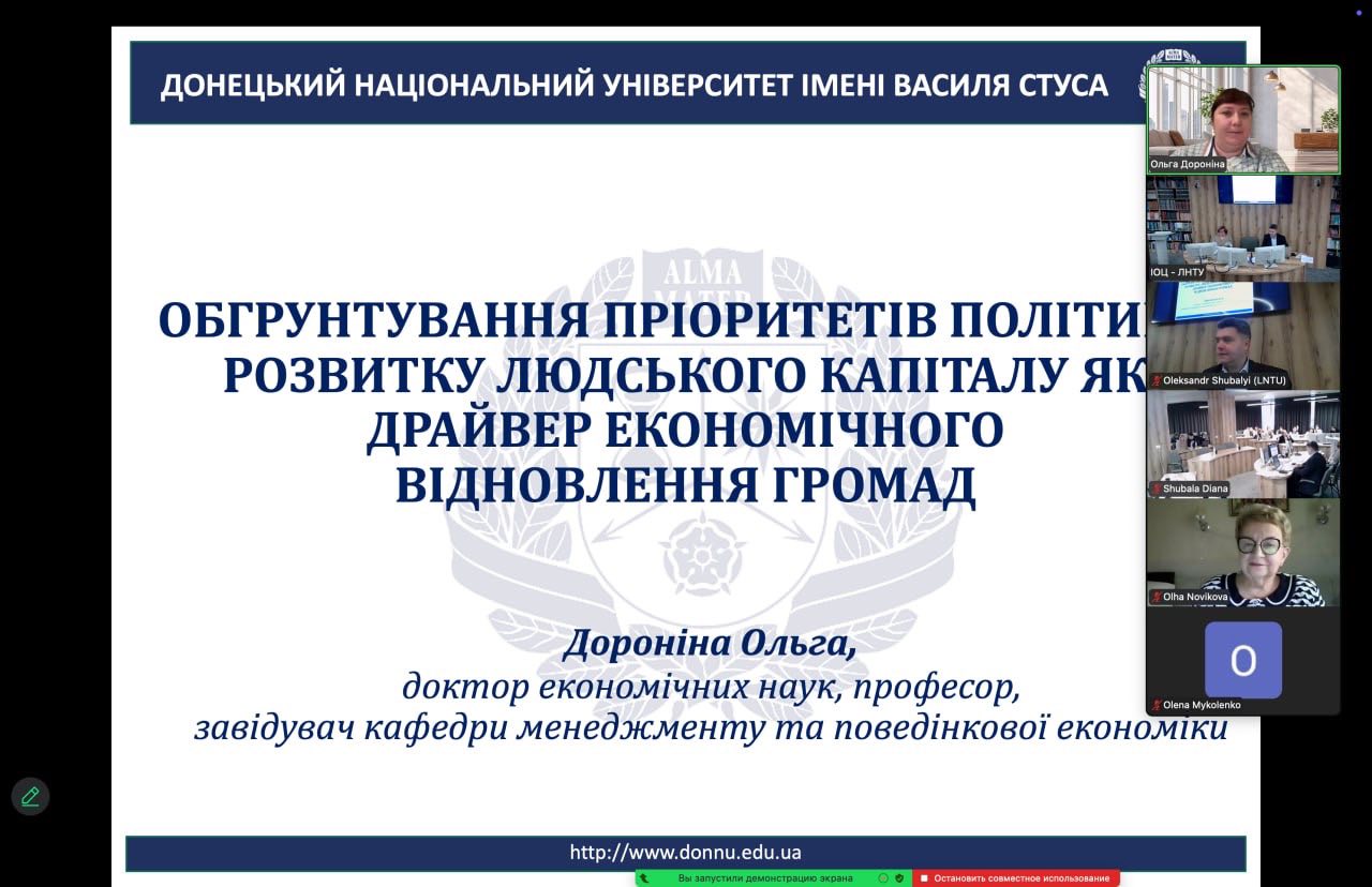 – на пленарному засіданні з доповіддю «Обґрунтування пріоритетів політики розвитку людського капіталу як драйвера економічного відновлення громад» виступила завідувачка кафедри, професорка Ольга Дороніна.