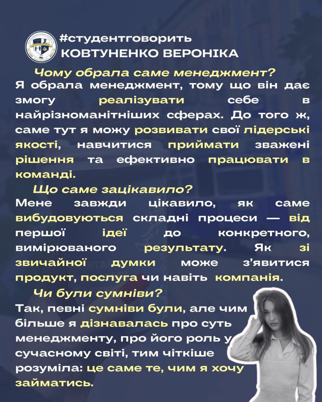 Вероніка ділиться тим, чому обрала менеджмент, що її мотивує та як звичайна цікавість перетворилася на свідомий шлях у професію.