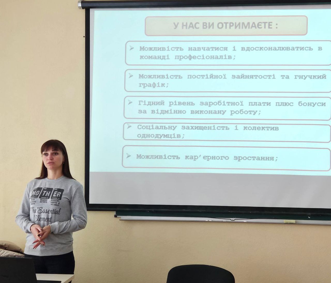Здобувачі економічного факультету 2-го та 3-го курсів спеціальностей 051 “Бізнес-економіка”, 071 “Диджитал облік і оподаткування”, 292 “Цифрова бізнес дипломатія”, 075 “Менеджмент регіонів” дізналися багато цікавої інформації про мотиваційну програму “Стабільне майбутнє 3.0” для студентів при працевлаштуванні.