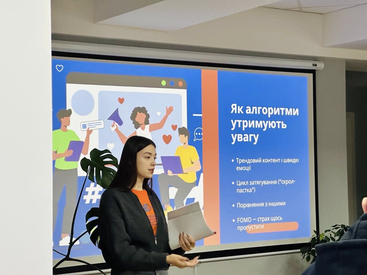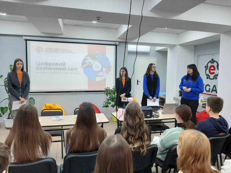 Саме тут відбувся тренінг «Цифровий безпечний світ», який провели неймовірні студентки освітніх програм Кафедра підприємництва, корпоративної та просторової економіки ДонНУ Софія Черномаз, Софія Дерунець, Дарія Кузь