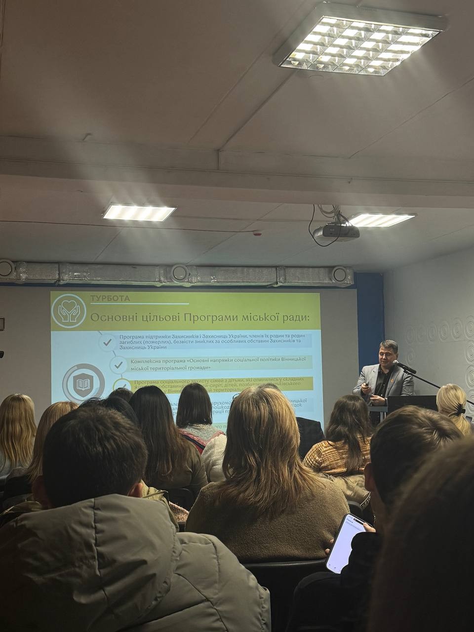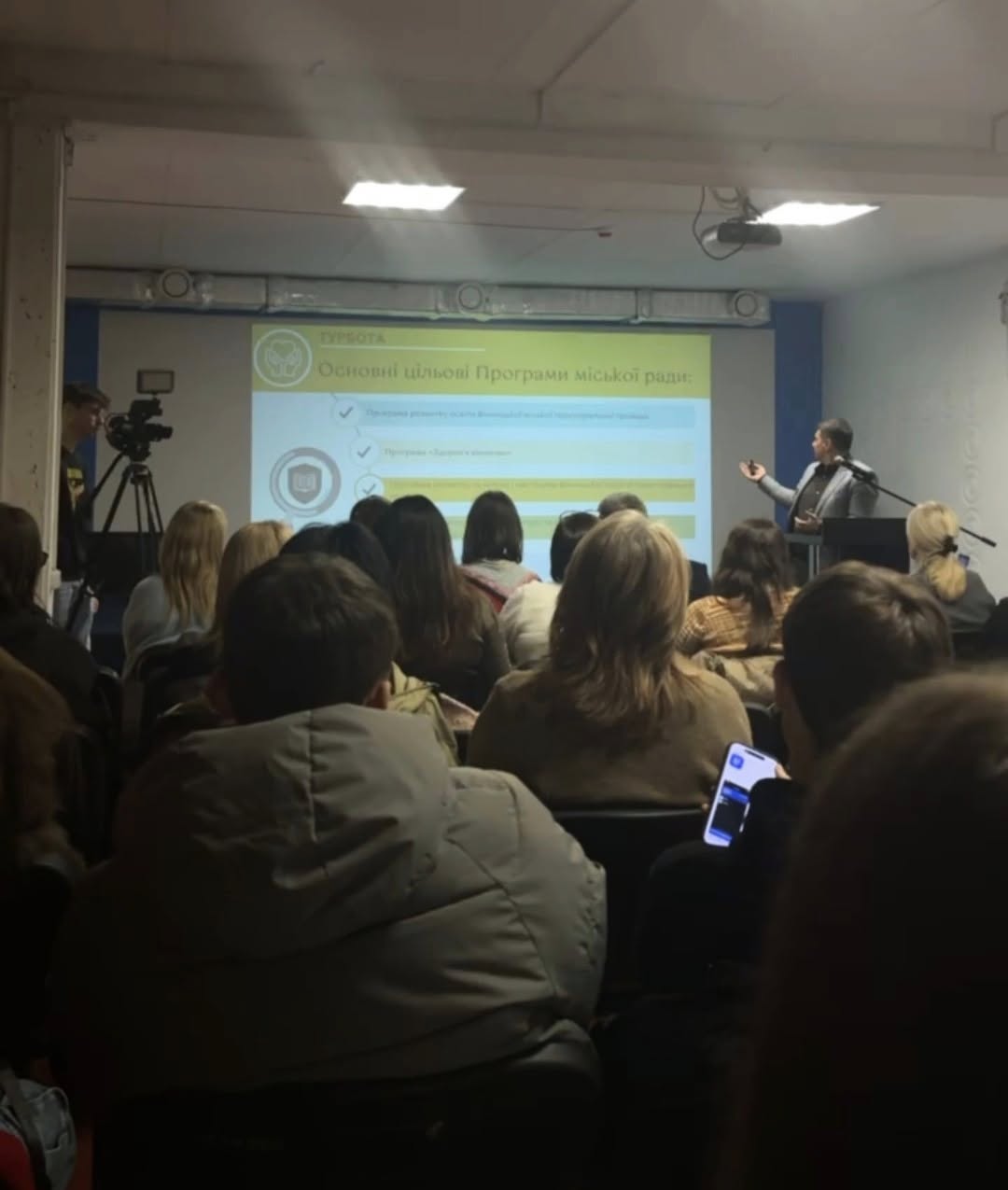 Представники здобувачів 3-го курсу ОС «Бакалавр» та 1-го курсу ОC «Магістр» кафедри фінансів і банківської справи ДонНУ імені Василя Стуса долучилися до важливого публічного заходу — засідання щодо підбиття підсумків виконання бюджету Вінницької міської територіальної громади за 2025 рік, презентацію якого здійснив заступник міського голови Андрій Очеретний.